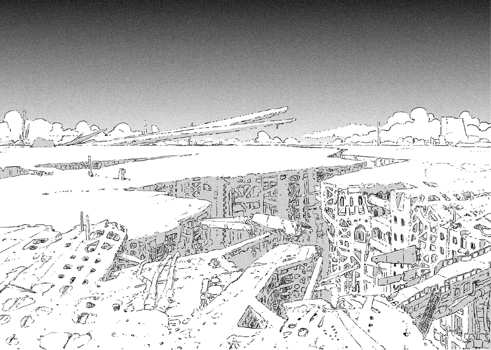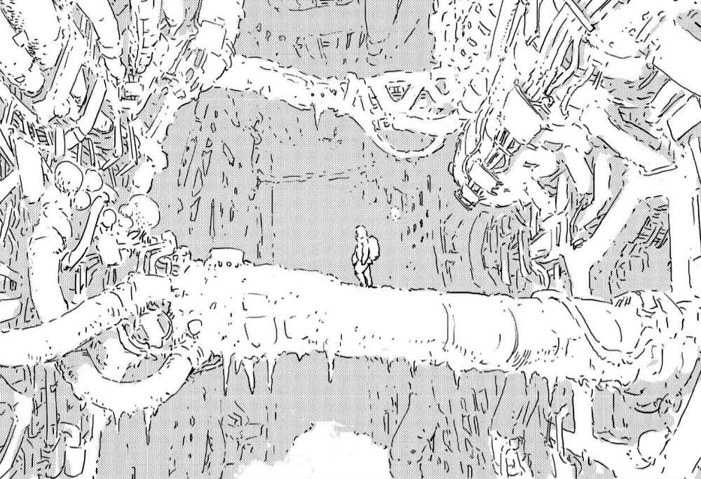 La storia si complica velocemente, creando diverse trame ed intrecci che devono ancora essere del tutto dipanati. La cosa che però mi ha colpito positivamente di questo lavoro è indubbiamente il tratto che l’autore usa nelle tavole, sicuramente ispirato alla grafica più classica dei manga giapponesi con occhi grandi e corporatura molto longilinea, ha però qualcosa di etereo. Sarà per l’ambientazione gelata che richiede l’assenza di colore nero, sarà per il tratto che sembra estremamente delicato quasi fosse timoroso d’appoggiare la matita sul foglio, a me ha lasciato fin da subito una buonissima impressione. Addirittura i contorni di molte immagini sembrano solo abbozzati, quasi a rendere l’idea dell’effimero che rappresentano. Di contro, la cura nel dettaglio è fantastica, oserei dire quasi maniacale da quanto è minuziosa. Queste caratteristiche sono presenti in tutte le sfaccettature dell’opera di Tsutomu Nihei, sia nel disegnare i personaggi sia nel rappresentare ambienti e macchine grandi o piccole. Le stesse esplosioni sembrano impalpabili, quasi come se fossero una candida nuvola di zucchero filato pur mantenendo una minuziosità notevole. Una rappresentazione così particolare non mi era mai capitata, ma l’ho amata sin da subito.
