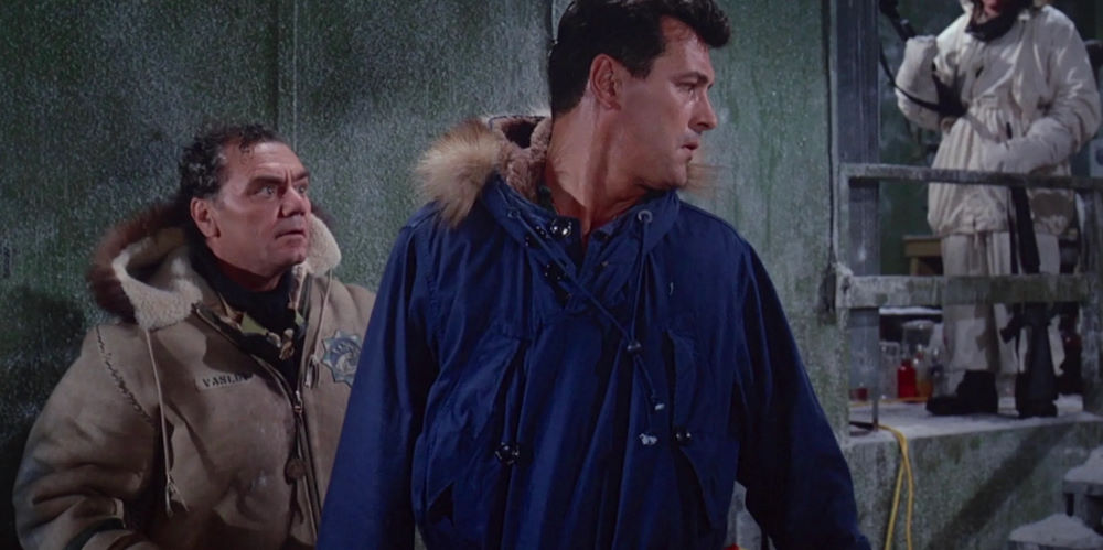 Base Artica Zebra vuole darsi un’aura di grandezza ed imponenza; e lo fa sia impiegando un cast di un certo rilievo (ma di questo parleremo più avanti) sia attraverso riprese dall’importante aspetto visivo. Ma la prima cosa che lo spettatore nota (oltre ad un satellite che si muove in direzione opposta a quella impressa dai motori…) è l’utilizzo di una imponente overture musicale ad inizio film che verrà poi replicata nell’intervallo e alla conclusione dello stesso: si tratta di un apprezzabile stile cinematografico sperimentato dalle grandi produzioni negli anni ’50 e ’60 ma che è stato ben presto abbandonato.