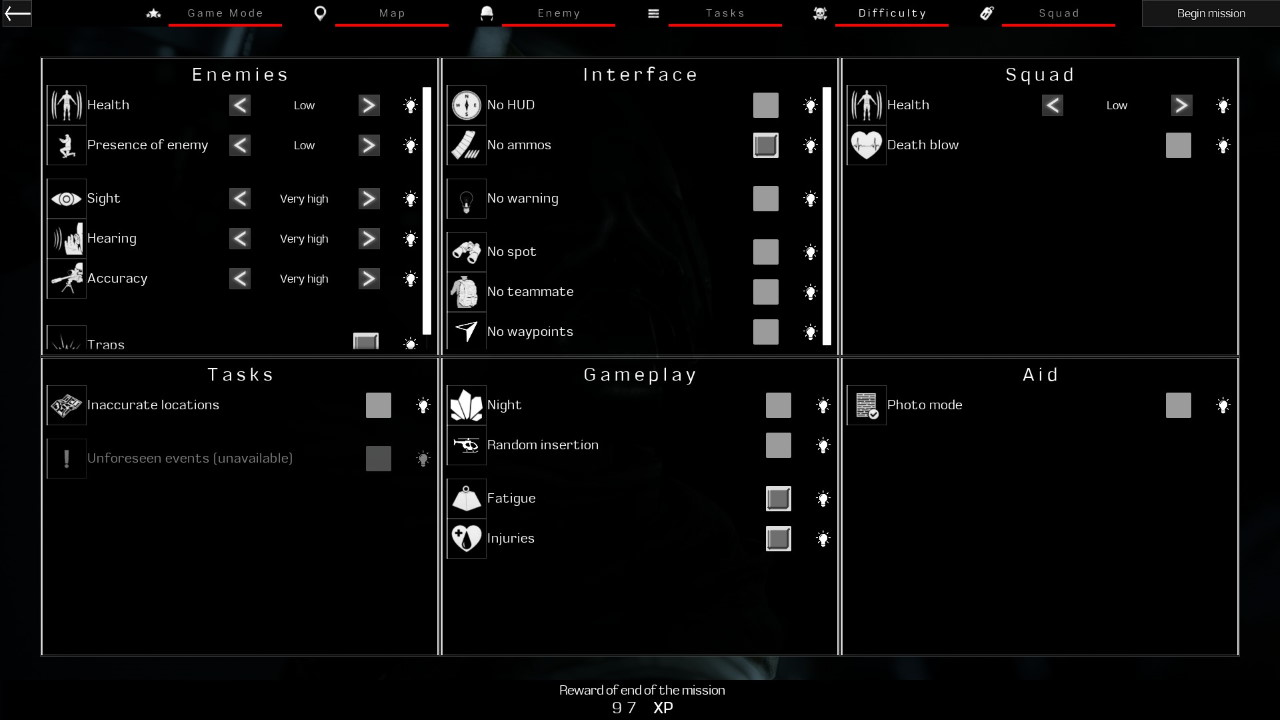 Peraltro lo scheletro del gioco è già ben sviluppato; sono diverse le tipologie di missione disponibili, visto che oltre alla classica eliminazione dei nemici esiste la cattura di punti strategici, una fuga silenziosa da prigionieri e il superamento di una fase di assedio. Ogni missione è internamente altamente configurabile, e ad esempio quando agiremo come squadra di incursione potremo dover salvare degli ostaggi, recuperare dei documenti, abbattere un bersaglio importante e così via. Potremo scegliere i nemici da affrontare, la mappa, la difficoltà, la composizione della nostra squadra e via dicendo. Insomma, Black One Blood Brothers è un sandbox che offre tantissime opzioni.