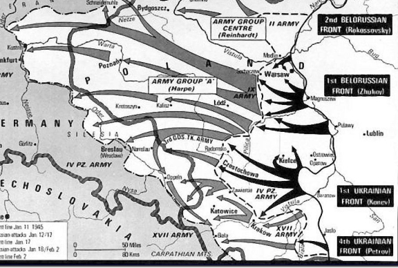 Il 12 Gennaio 1945 i sovietici lanciano una massiccia offensiva verso il cuore della Polonia occupata, fermandosi a meno di cento chilometri da Berlino.