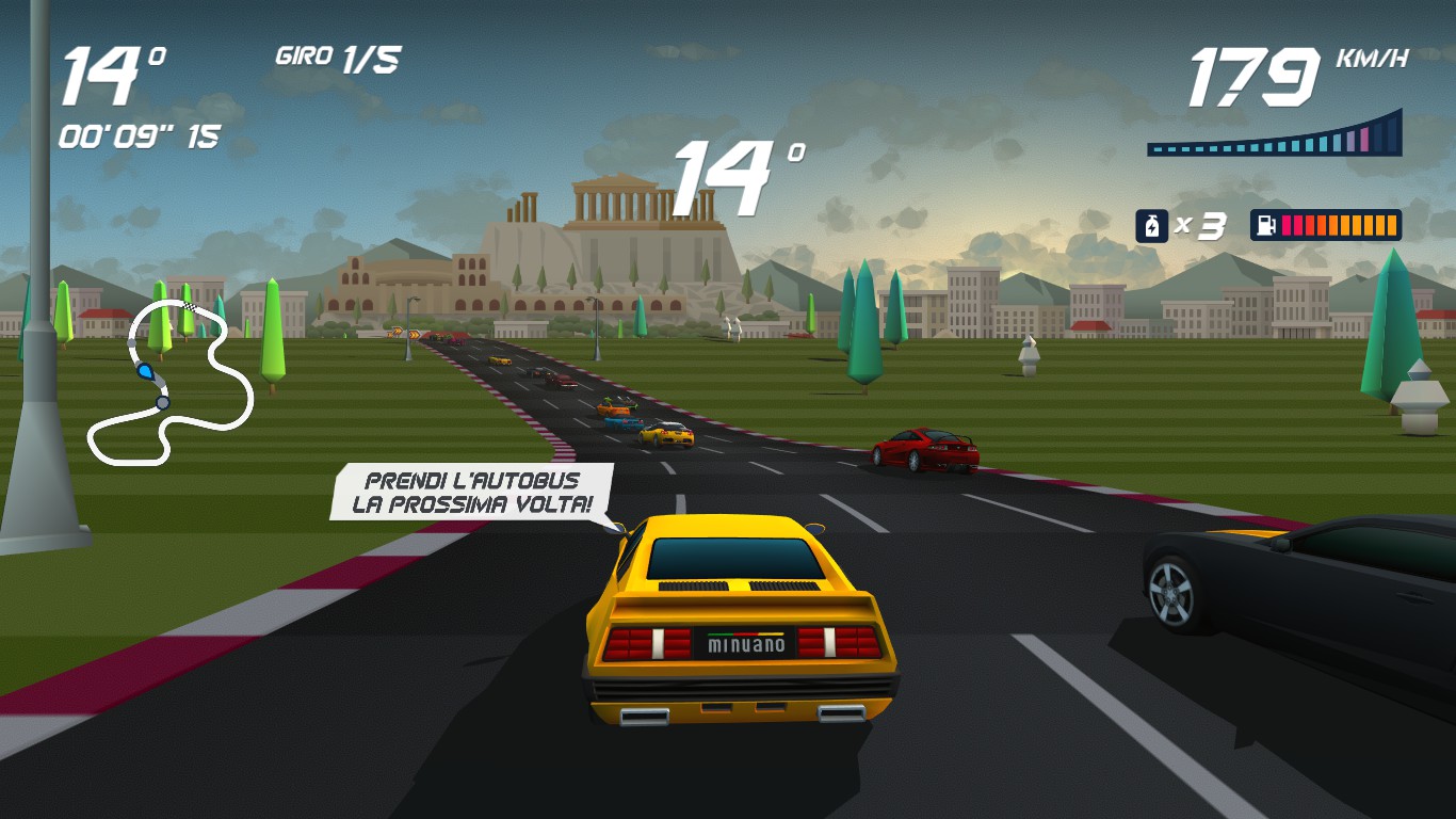 Aquiris è uno studio di Porto Alegre che ha costruito il suo successo sui giochi immediati e dalla grafica simpatica e fumettosa. Per fare il salto di qualità ha dovuto però scomodare il passato glorioso dei racing game a 16 bit, epoca di grafiche ricercate che iniziavano a strizzare l’occhio al realismo senza perdere identità e di corse furiose verso il prossimo check point. Horizon Chase Turbo è quasi una checklist da spuntare ad ogni gara: Outrun? C’è. Lotus? C’è. Top Gear? C’è. Jaguar? Oggi non stava bene, ma domani viene signora maestra, non si preoccupi.