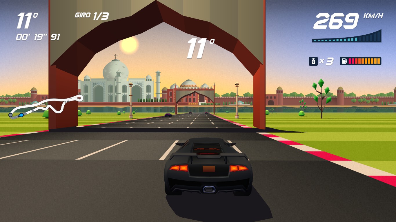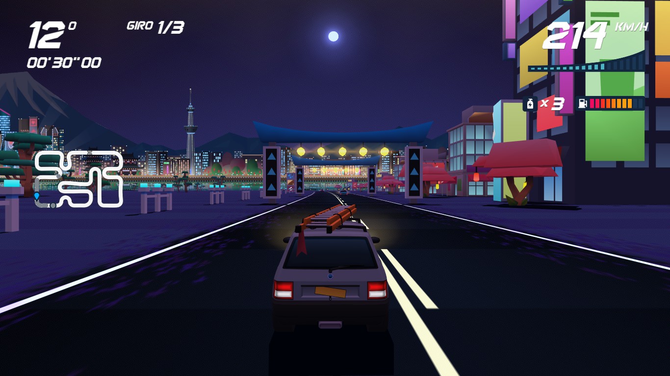 Se però i cloni dei sopraccitati classici sciamano nella libreria di Steam come le cimici in ottobre, il team riograndense ha posto tutta la sua attenzione sul creare un’esperienza sia classica che moderna, che ben si adattasse alla trasposizione su tutte le piattaforme contemporanee. Il low poly era una scelta logica ma non scontata, e la carenza di texture viene compensata da un’abbondanza di particolari che rende ogni gara uno spettacolo per gli occhi. È davvero difficile non rimanere ammirati davanti alla quantità di strutture, elementi di contorno e parti della pista che scorrono velocissimi sotto al nostro naso.