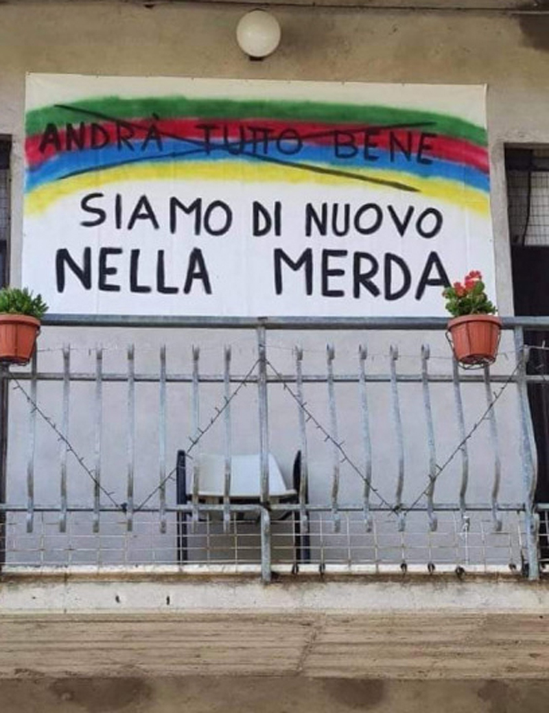 Ormai prossimi ad una serrata quasi totale dell’Italia, ecco quali striscioni appaiono ora sui nostri balconi.