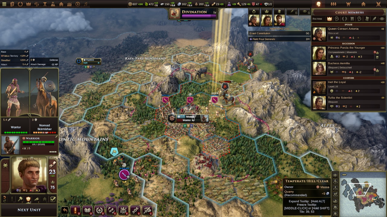 Per il suo diciottesimo compleanno, Servilia regala all’impero romano l’Oracolo, la seconda grande meraviglia. Sotto il suo comando Roma si è fortemente espansa, rafforzata militarmente ed ha recuperato quasi completamente il distacco di prestigio dalle altre civiltà. Con abilità mantiene un equilibrio in politica estera ed interna che, se da un lato previene situazioni estreme, dall’altro sta scontentando le potenti famiglie romane.