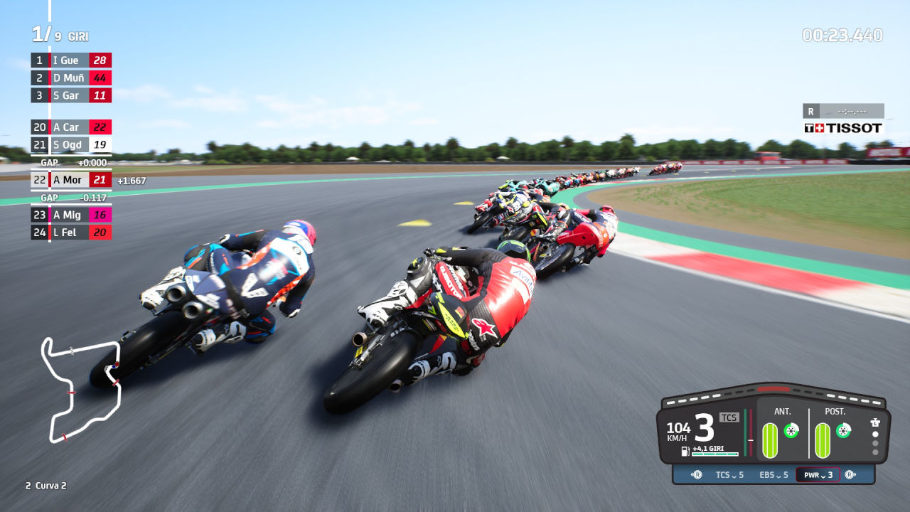 Quello che in MotoGP22 stupisce in negativo è come i settaggi di default rendano la vita impossibile al giocatore: la moto non curva e non frena, e non si tratta di adattare le sospensioni o l’impianto frenante. È un problema legato al modello di guida e alla reattività degli input forniti dal controller. Se su questi aspetti in qualche modo è possibile intervenire, mitigando gli effetti nefasti andando a modificare sospensioni (come è giusto che sia) e la curva dell’azione frenante, resta invariato il fatto che la moto è sostanzialmente instabile oltre ogni logica giustificazione: ad ogni curva rischiamo di finire per terra.