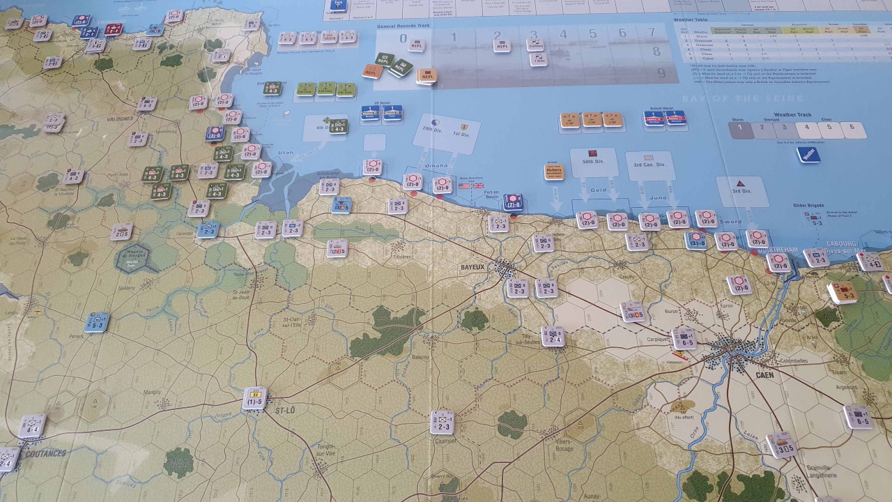Spesso il neofita che si avvicina al wargame ha delle riserve sulla complessità di certi wargame, ma tale peculiarità non fa parte del wargame di Mark Simonitch. La mappa di gioco riporta fedelmente l’intera costa normanna e le letture consigliate in precedenza vi permetteranno di apprezzare meglio la riproduzione ludica, in quanto potrete individuare i punti focali dei combattimenti, le cittadine teatro dei violenti corpo a corpo oppure comprendere le asperità della Normandia rappresentate da quelle siepi alte e impenetrabili chiamate dai francesi “bocage”. Nella fattispecie potrete apprendere di più da questo wargame che dal bel film di Spielberg, che non ha sicuramente fini illustrativi, ma cerca di rappresentare la drammaticità della guerra attraverso gli occhi di un capitano alle prese con le sue paure e il tentativo di salvare l’ultimo di quattro fratelli americani appartenente alle forze aviotrasportate americane. Questo livello interpretativo non è ovviamente presente nel wargame, che ha i suoi punti di forza nella rappresentazione storica geografica e nella possibilità di permettere un alto livello di interazione fra giocatore e l’episodio storico.