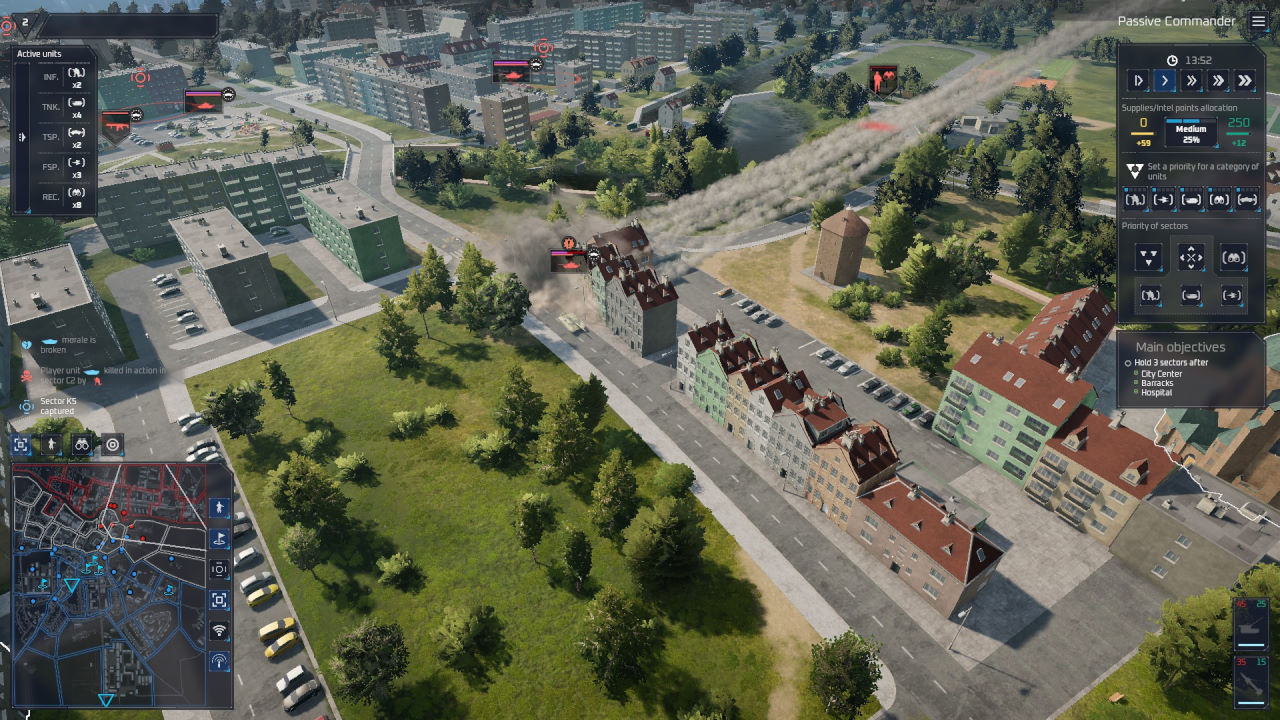 Quando si scende sul campo di battaglia, le somiglianze coi titoli prima menzionati sono piuttosto simili, ma va menzionata l’interessante possibilità di lasciare all’AI la gestione delle truppe e soffermarsi su un controllo a più alto livello, impostando priorità diverse ad ogni settore, arrivando ad una granularità su quali tipi di unità vogliamo vedere zona per zona. Si tratta di una felice intuizione che alleggerisce il carico di microgestione sulle spalle del giocatore, visto anche il numero di unità che potrebbero essere presenti contemporaneamente sulle vaste mappe di gioco; qualcosa di cui avrebbe bisogno il rivale Broken Arrow.