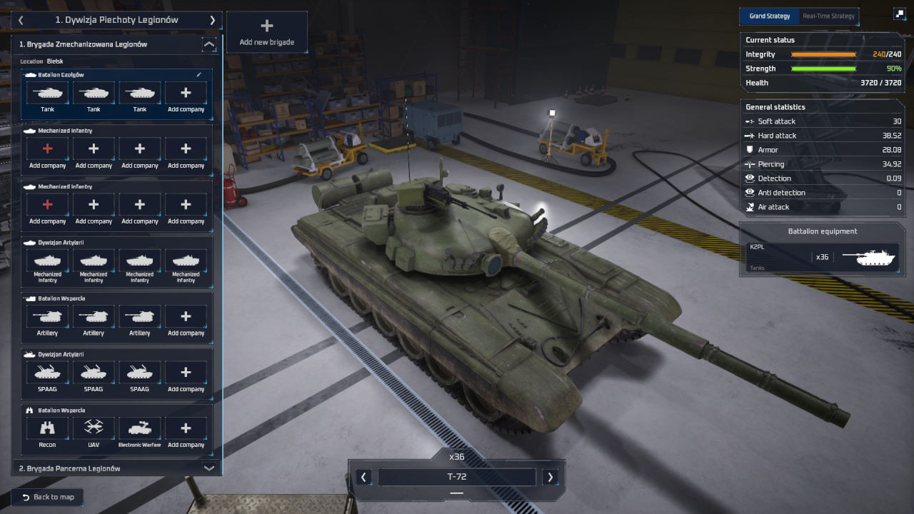 Se è comprensibile che la versione fornitaci sia ancora molto acerba e manchino quasi tutte le informazioni che servono al giocatore per gestire al meglio la parte strategica, meno è l’approccio piuttosto complesso a determinate parti dell’interfaccia proprio su questo livello. Su tutte possiamo menzionare l’approntamento di nuove divisioni, l’aggiunta di reggimenti alle brigate o l’accorpamento di unità diverse, ma l’elenco sarebbe lunghissimo (a partire dalla difficoltà in fase di produzione di capire quali caratteristiche hanno le unità, o l’evidenza a quale gruppo di combattimento appartenga l’unità selezionata passando per come impattino sul gioco le varie installazioni industriali dislocate sulla mappa).