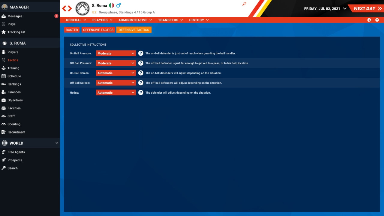 Il motore gestionale è ben realizzato. Sono presenti tutti i principali aspetti che fanno parte della vita di una società sportiva, dalla gestione del roster ai contratti, dalla squadra giovanile al proprio palazzetto e così via. Ovviamente tutte le squadre sono simulate con lo stesso dettaglio della nostra, tanto che è possibile cercare lavoro in un’altra squadra se le cose non vanno benissimo o se vogliamo semplicemente far carriera.