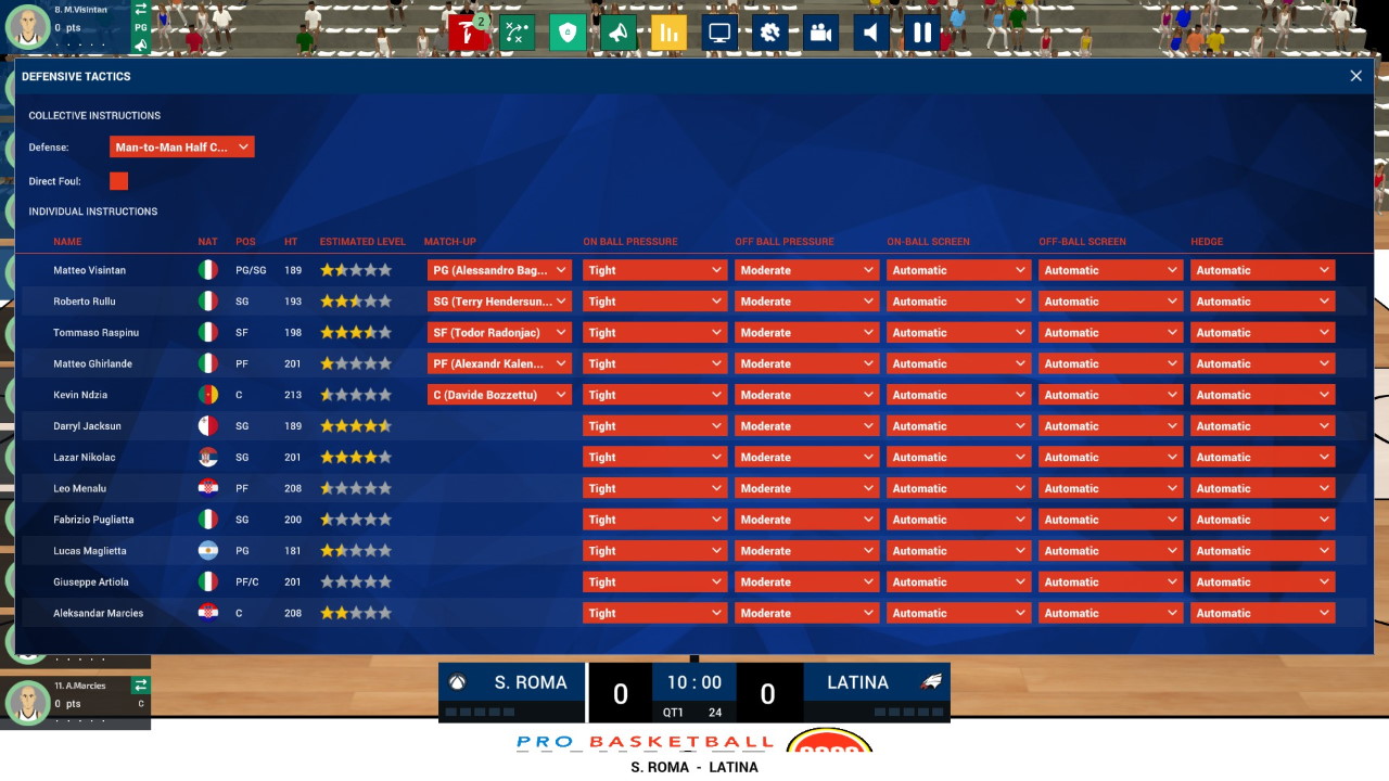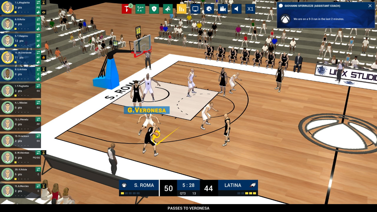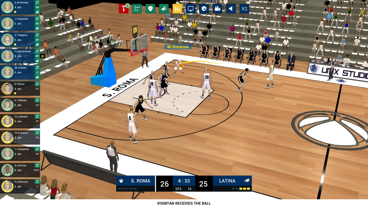 Durante la partita possiamo chiamare schemi, dare ordini individuali o di squadra; possiamo ovviamente vedere statistiche e punteggi, anche se pure stavolta i dati potevano essere presentati molto meglio, a partire dalle statistiche individuali e di squadra e dal quintetto in campo per gli avversari.