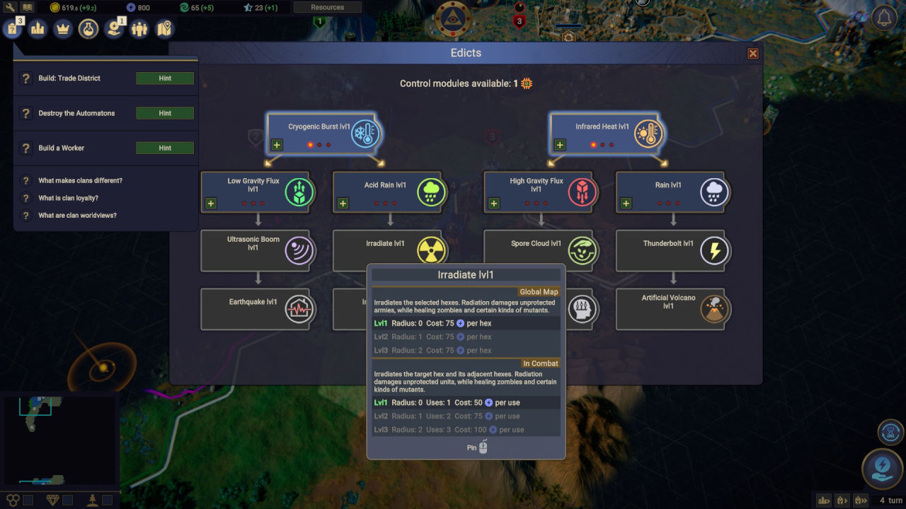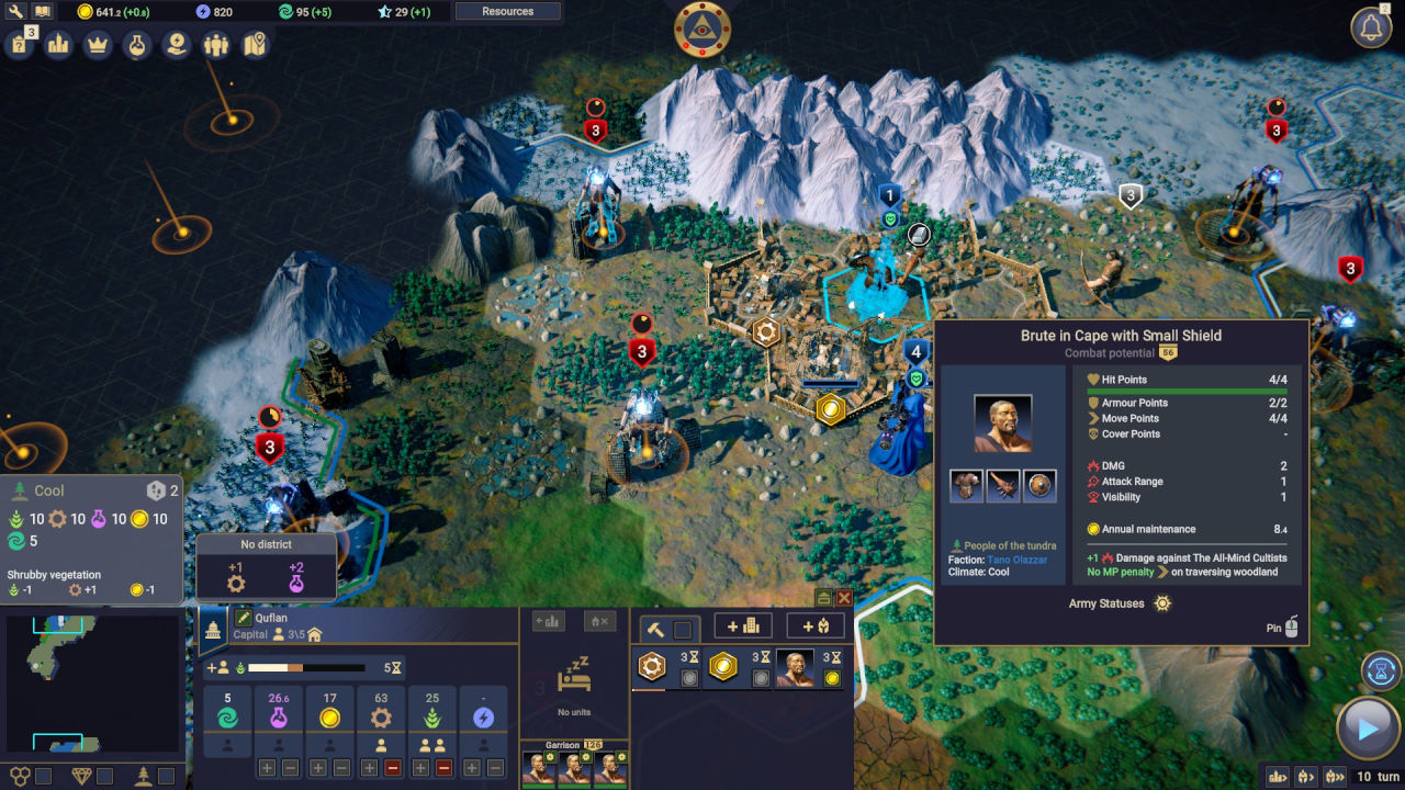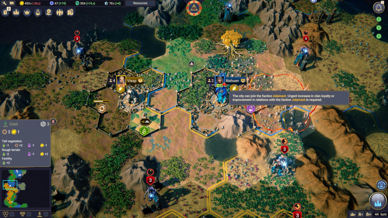 Il sistema delle notifiche è poi assolutamente insufficiente; manca addirittura la segnalazione di inizio turno, e quelle relative a produzione ed eventi non solo non catturano l’attenzione ma sono anche carenti nel catturare tutto ciò che interessa ad un giocatore quando si approccia ad un 4X, inclusi anche solo gli effetti delle azioni diplomatiche avversarie tese a far ribellare un nostro clan.