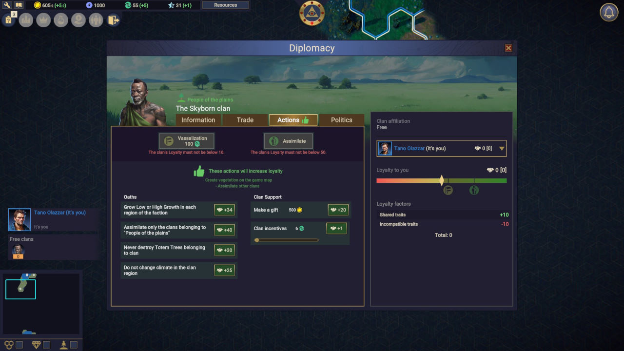 Ogni accampamento rappresenta un clan, e ogni clan ha i suoi tratti distintivi spesso incompatibili fra di loro. Visto che il nostro scopo è quello di espandere il territorio sotto il nostro controllo, e che per poterlo fare dovremo arruolare o annettere questi clan, è immediatamente evidente come la loro convivenza possa essere difficile se non impossibile; al solito fronte esterno se ne apre quindi uno interno in grado di aggiungere un livello di complessità abbastanza nuovo per il genere.