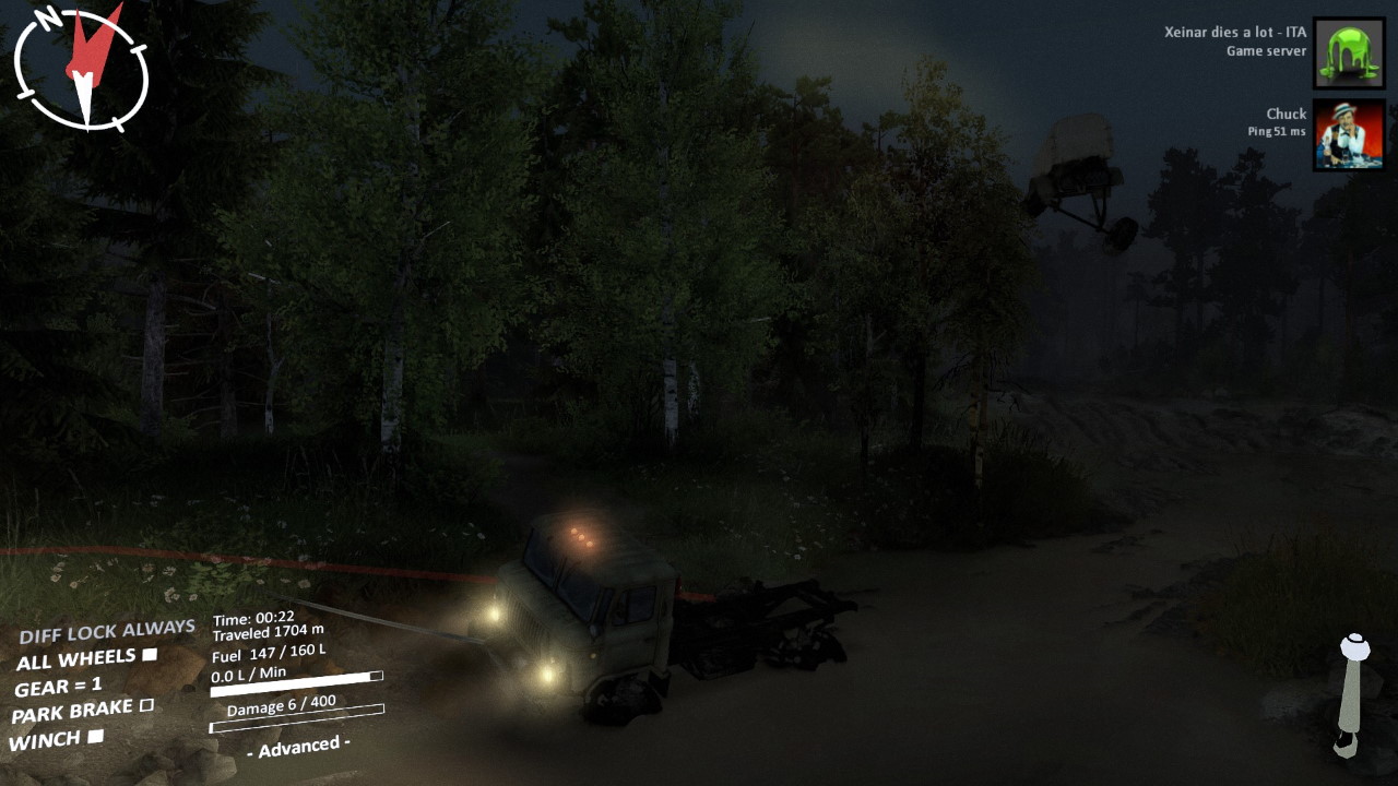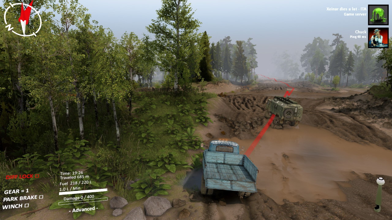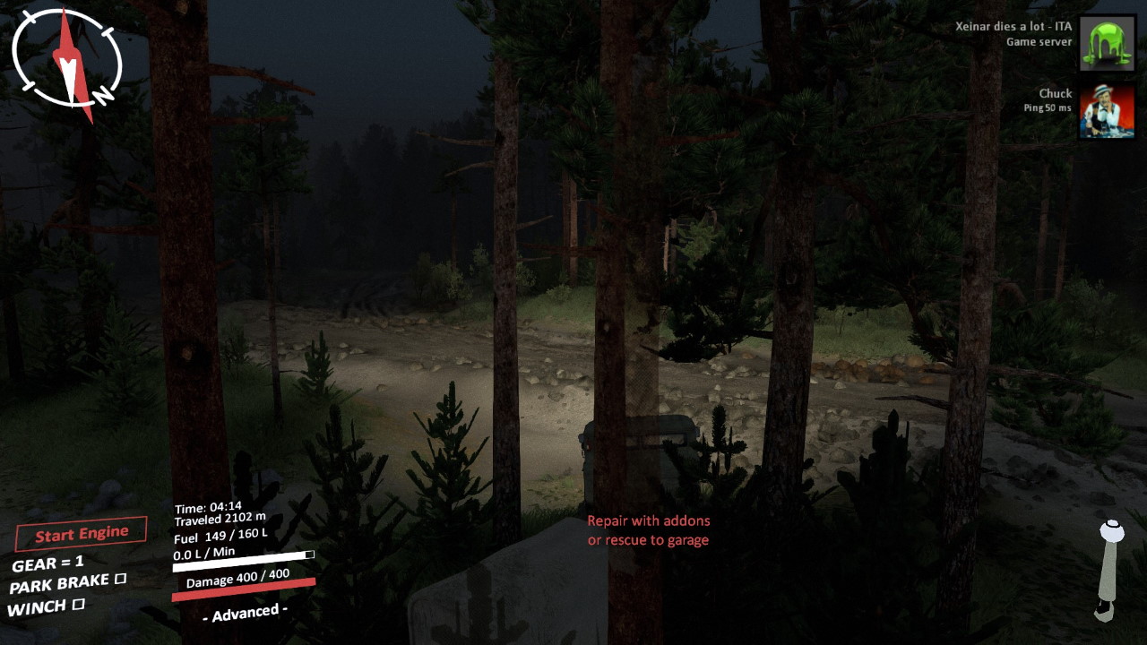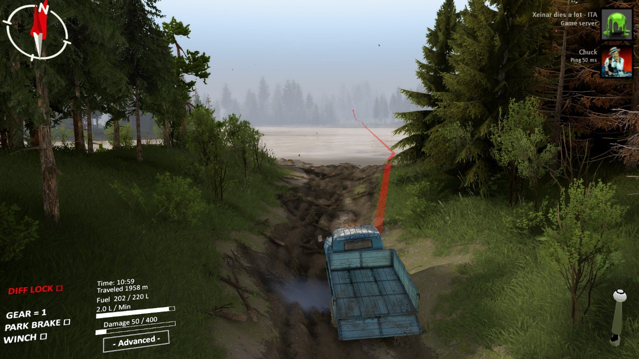 Dall’altro, Spintires è il compendio di come rendere misera ed infelice la vita dei giocatori. Non esiste nessun tutorial, solo una succinta ed inageduata paginetta che funge da guida per spiegare come funziona il gioco. Non una parola sul funzionamento delle gru, su cosa servano i vari componenti opzionali da montare sui camion, su come sbloccare garage e aree visitabili, su come completare gli obiettivi. Nulla. L’interfaccia è inutilmente e “sovieticamente” mal progettata, con funzioni nascoste che impediscono di guidare e contestualmente gestire per esempio il verricello (a meno di non fare contorsioni). Molti controller non vengono riconosciuti (solo in seguito arriverà un supporto parziale, ma che a tutt’oggi non permette l’uso di diversi comandi), e la gestione della mappa e della navigazione è spartana al punto da essere quasi fastidiosa.