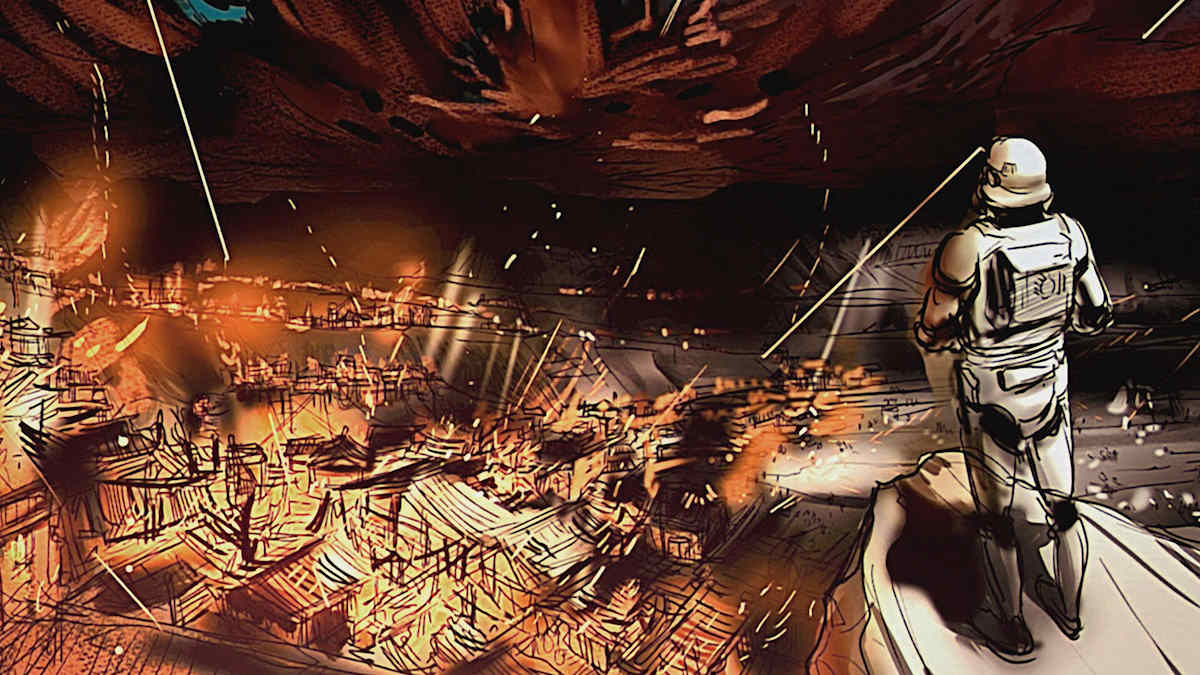 L’ultimo episodio si discosta radicalmente dal resto: BLACK è psichedelico, astratto e volutamente destabilizzante. Racconta gli ultimi istanti di uno stormtrooper poco prima dell’esplosione della Morte Nera, affidando interamente la narrazione a musica e immagini che si susseguono in un turbine ipnotico. Tra le sequenze si percepiscono dettagli e immagini iconiche che fanno quasi pensare a un tributo al momento cardine della saga; l’episodio sembra progettato per confondere e affascinare al tempo stesso, collocandosi più vicino a un’opera artistica che a un cortometraggio animato tradizionale.
