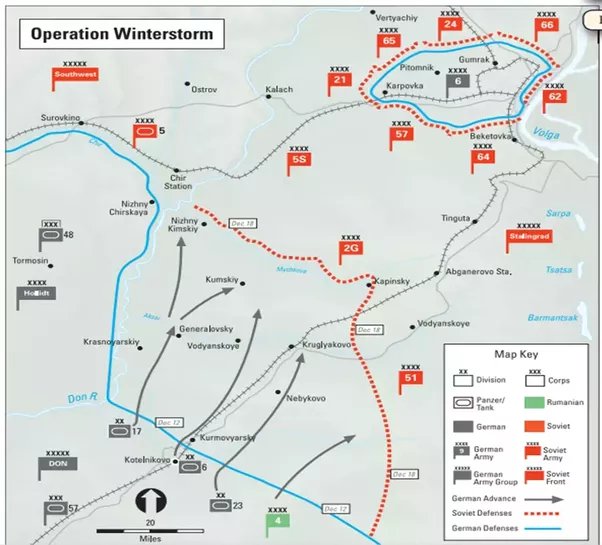 Manstein rapidamente informa Hitler della situazione, fornendogli un rapporto dettagliato sia sullo stato delle proprie forze accumulate, sia su quello dell’armata intrappolata nella grande città sovietica, e decide che se vuole salvare il salvabile deve agire rapidamente. Nonostante la promessa di ricevere ingenti forze (una decina di divisioni, la metà delle quali divisioni Panzer) capaci di penetrare le numerose divisioni sovietiche, Manstein riesce a schierare in offensiva solamente due divisioni Panzer, supportate da elementi di fanteria. L’11° Panzer, che doveva rappresentare la punta di diamante, viene bloccata in posizione difensiva pochi giorni prima dell’assalto, per via di un attacco sovietico respinto in extremis.