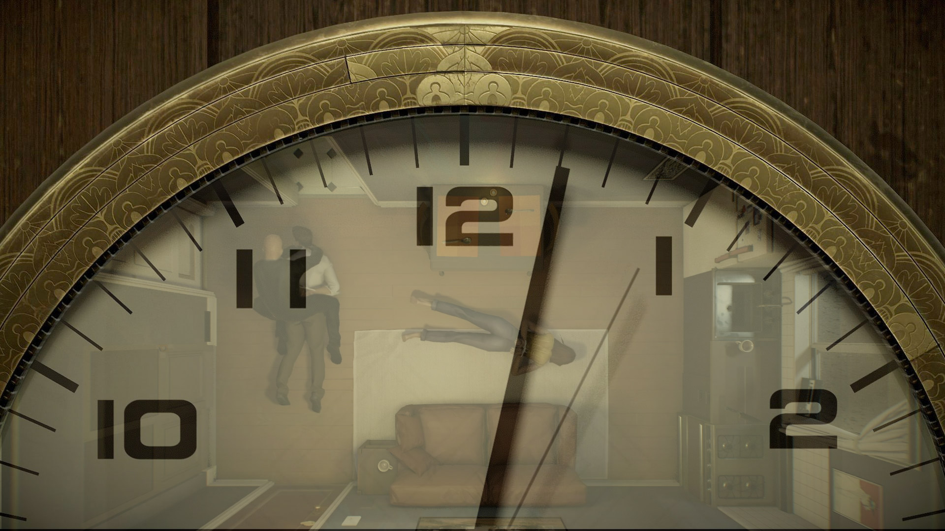 Il gioco affronta uno dei temi che più mi interessano, ovvero quello dei viaggi nel tempo e, più in particolare, degli anelli temporali. Vivremo una situazione che, per chi ha visto il film Ricomincio Da Capo, sarà molto familiare. Nel gioco siamo infatti costretti a rivivere all’infinito dodici minuti della nostra vita, dodici minuti molto intensi per di più: tornati a casa da nostra moglie veniamo assaliti da uno sconosciuto senza apparente ragione.